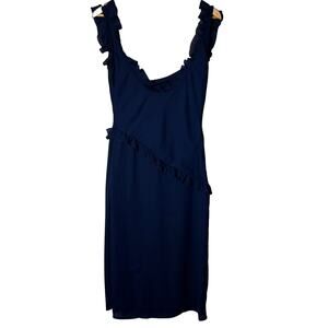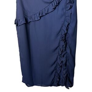 Lucy in the Sky Dress Size M Chiffon Ruffle Navy Knee Length Slit Party Wedding