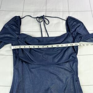 Lucy in the Sky Dress Womens Medium Blue Foil Flare Sleeve Mini Party Drape