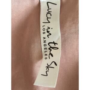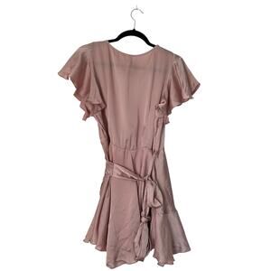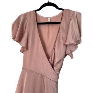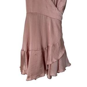 Lucy in the Sky Eliza Wrap Dress in Blush Satin Size L Flutter Sleeve Tiered