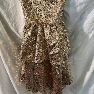 Lucy in the Sky Gold Sequin Strapless Ruffle Mini Dress – Size L
