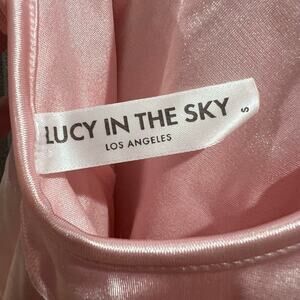 Lucy in the Sky Los Angeles Ruffle Halter Dress Pink Sz Small Lingerie Tie Back