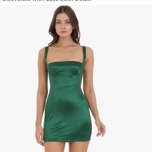 Lucy in the Sky- Maxine Satin Bodycon Dress in Green small