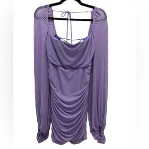 Lucy in the Sky Ruched Bodycon Dress Large Power Mesh Purple Hoco Mini Cocktail