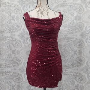 Lucy in the Sky Sequin bodycon mini red dress Size XS Holiday Party Festival
