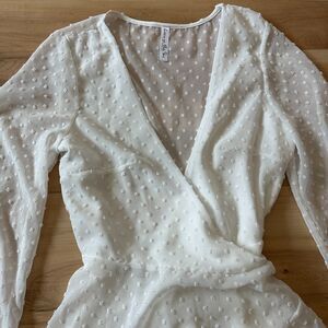 Lucy in the Sky Womens Wrap Dress in Ivory Dotted Chiffon Size Medium NWOT