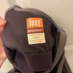 Lucy striped athletic tank. Thin cross cross back straps, fitted at the bust and looser around the middle. Soft, breathable material. Shelf bra with removable padding. Very good used condition.