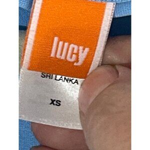 Lucy short sleeve shirt exercise shirt nylon blend blue XS bust 16" READ
