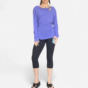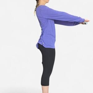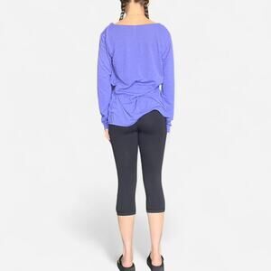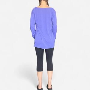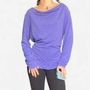 Lucy soft purple long sleeve slinky top w/ boat neck, high quality merino wool polyester blend