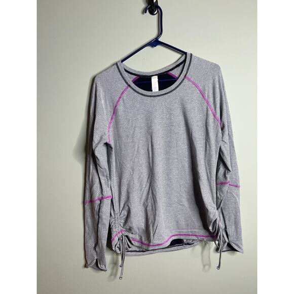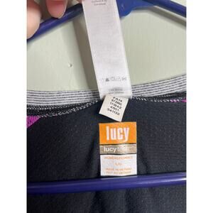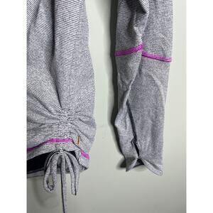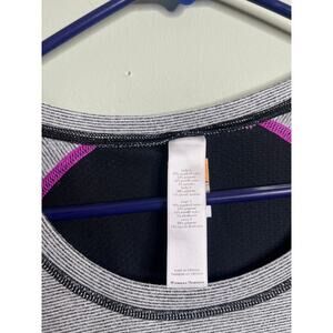 Lucy striped tech dashing run long sleeve top, black and white with pink trim. size large, excellent used condition