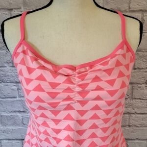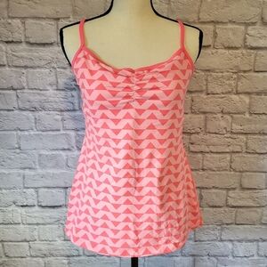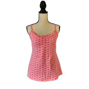 Lucy womens tank top in a peachy pink and lighter pink triangle print. No size tag but fits like a size M. Please see measurements for fit.