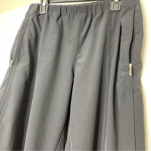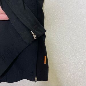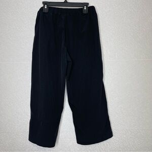 •Features: Black cropped zip leg jogger/track pants. Two side zip pockets and zippers at the ankle. Pull on style with elastic waist