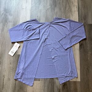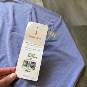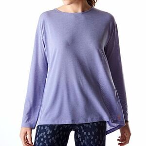 Sporty light-weight Flowy Uncharted long sleeve mesh top from Lucy. NEW! Size medium. The color is called cool lilac. The open split back creates a flowy fit. Please see photo section for approximate flat measurements. Material: 86% recycled polyester, 4% polyester, 10% spandex.