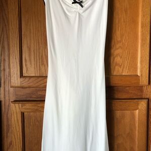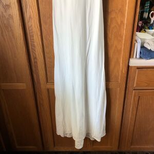 Whether you're attending a wedding, a cocktail party, or a formal gathering, this LUCY IN THE SKY bodycon dress offers versatility for multiple occasions. Its long, flowing silhouette pairs seamlessly with heels or flats, making it a stylish choice for both casual and formal settings. The dress is lined for added comfort and features a convenient hook and eye closure for a secure fit. Embrace the designer theme and make a statement at your next event with this chic, white dress.