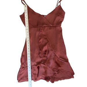 Lucy in the Sky Smooth Satin Orange Rust Ruffle Slip Mini Dress Size S