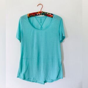 Lucy | teal semi-sheer short sleeve athletic t-shirt top