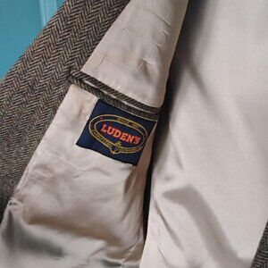 Classic Luden's 100% All Wool Men's Herringbone Blazer. Measurement from top of collar to bottom of blazer's back is 31.5 inches. Sleeve length from shoulder to cuff is 25 inches.