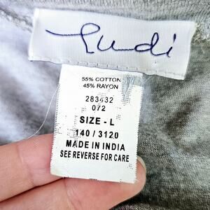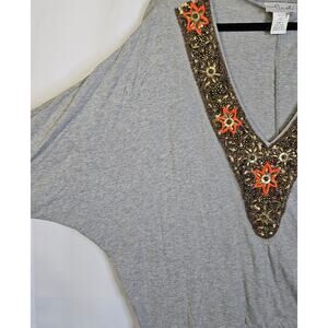 Ludi Womens Grey Stretchy Dolman Sleeve Top Blouse Intricate Beaded V Neck Large