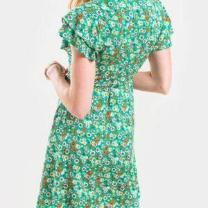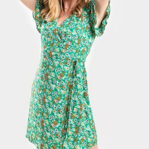 ✨ Embrace the good vibes of summer gardens with this bold women's dress. Featured in a wrap silhouette, with an all over field of flowers print, flounced short cap sleeves, and a side tie, this dress is perfect for your park picnic and transitions right to work for casual Fridays!