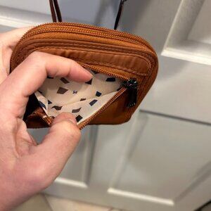 Interior features 12 credit card slots, zip pocket, slip pockets, and elastic loops