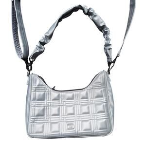 Lug Groove Silver Lux shine metallic crossbody bag vegan leather quilted puffy
