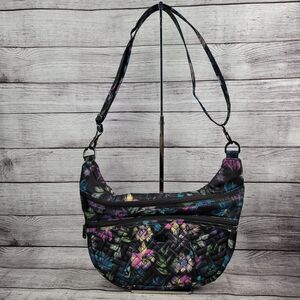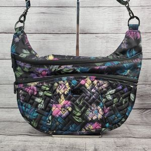 Lug Hippy Floral Bloom Print Black Adjustable Shoulder Crossbody Bag Quilted