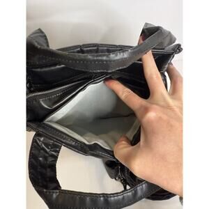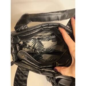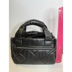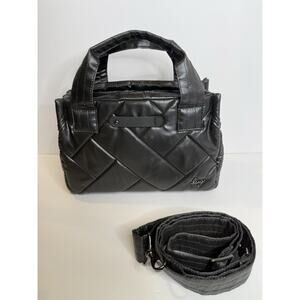 Lug Jitterbug Quilted Mini Tote Crossbody Bag Metallic Black Nylon with Strap