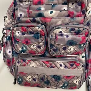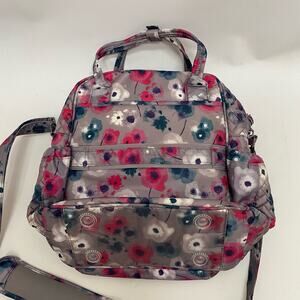 Lug Mini Puddle Jumper Travel Bag Tote Crossbody Gray Floral Pocket Storage NWOT
