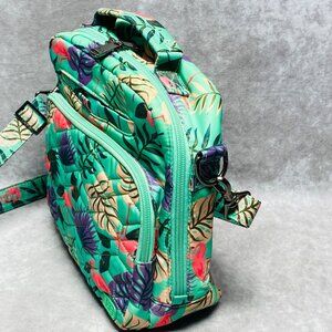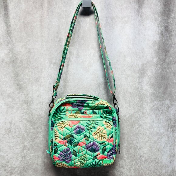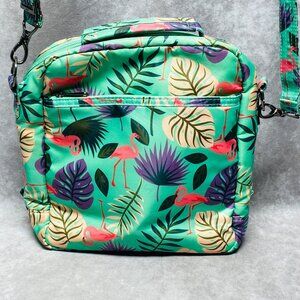 This Lug Ranger crossbody bag features a vibrant flamingo and leaf design, offering a stylish and spacious option for daily essentials.