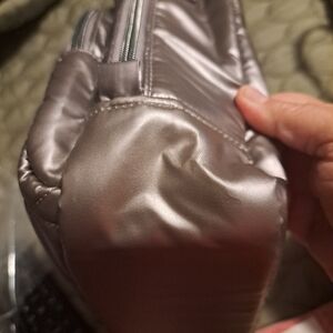 Chic metallic pearl ranger with quilted design. Offers ample storage with multiple pockets.