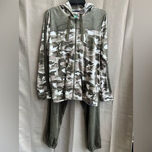 Lug Ranger Sweat Set Womens Green Camo Pants Hoodie Velour 2 Piece Fleece