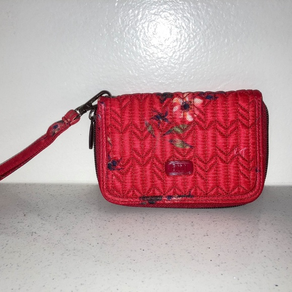 Red zip bifold with wrist strap. Preowned in great condition.