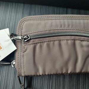 It has a removable wristlet strap for versatile carrying options.