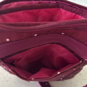 Lug Skipper RFID Shoulder Crossbody Bag Burgundy Dot Quilted Travel Casual EUC