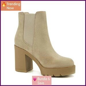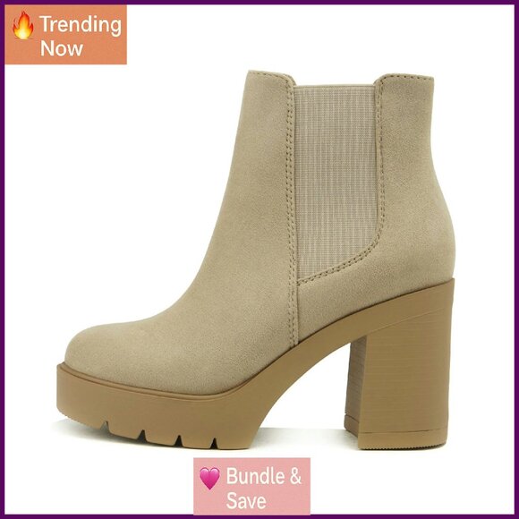 • Style: Modern Chelsea boot design with a lug sole and 3.5" block heel. Features a 1" platform and double stretchy elastic side panels for a sleek, contemporary aesthetic.