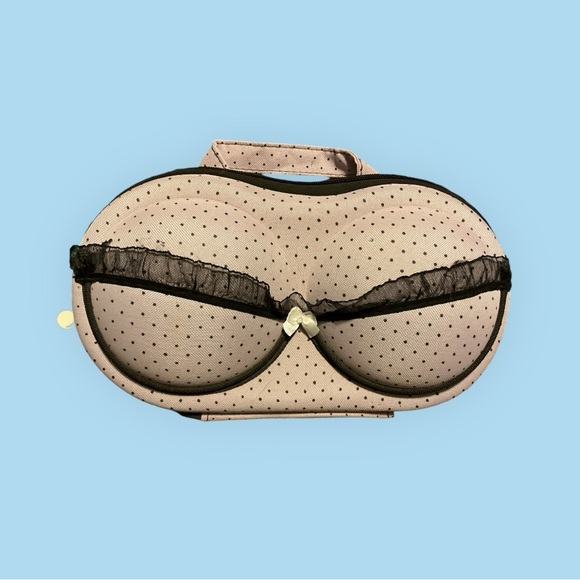 This bra holder is the perfect addition to your luggage. Pink wi5 black polka dots has plenty of room for bras and undies for that special weekend away.
