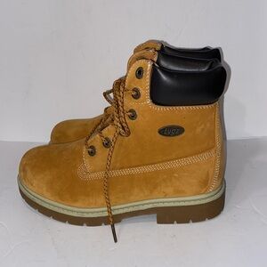 Lugz Vegan Golden Wheat Bark Empire Hi Women's Water-Resistant Boots Size 6 EUC Light signs of scuffing on toe but no visible signs of wear on sole. (I believe the scuffing is from being stored in closet) All man-made materials