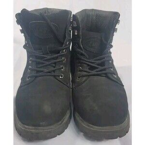 These Lugz boots have a classic workwear/utility style with a touch of streetwear influence. The dark color (likely black or dark brown), combined with the sturdy construction, visible stitching, and thick sole, gives them a durable and practical look. The lace-up design and metal eyelets add to the work boot aesthetic. Lugz, as a brand, has a history rooted in urban and streetwear culture, which is reflected in the slightly chunky silhouette. They project a sense of ruggedness and practicality while also being suitable for casual, everyday wear. They align with the current trends of workwear-inspired fashion and the resurgence of 90s/early 2000s styles.