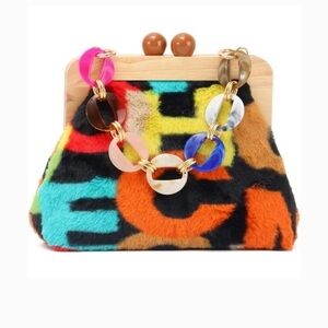Kiss Lock Funky Purse: The adorable purse is made of soft fuzzy material, It is well made and stylish. comfortable to touch. Designed with unique wooden kiss lock and retro exquisite hardware. Perfect for everyday use and special occasions, wedding, party, dating, cocktail party, banquet, travel etc.