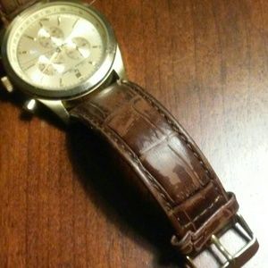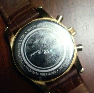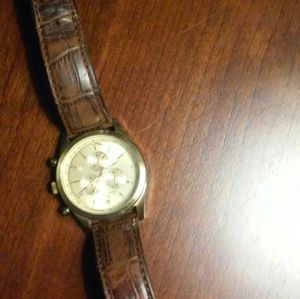 18k gold face and strap clip. 3 dial analog system. Leather strap. Missing one leather strap. *See picture for reference*