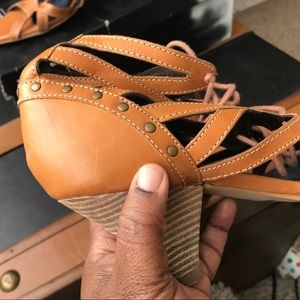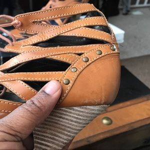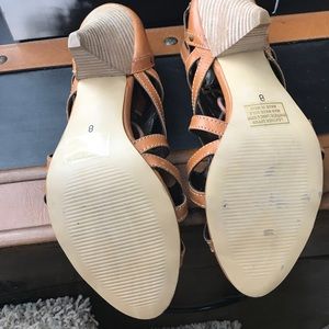 These are super cute and comfy "gladiator" style heels. I wore them once for a blog post, so minimal wear. There are some scuffs (pictures) but otherwise in really good condition.