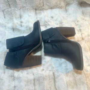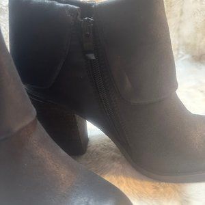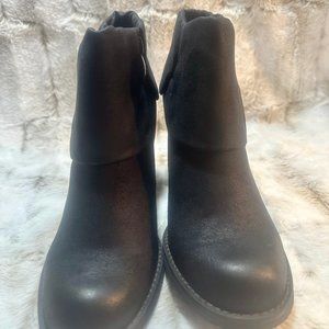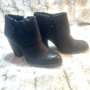 Luichiny Hobo Fold Over Boot Black Distressed Look Block Heels