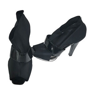 Luichiny Marching On Black Open Toe Platform Stilleto Heel Shoes Size 10 M