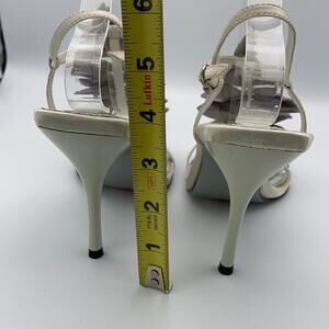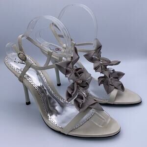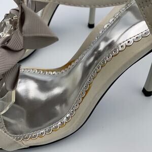 Luichiny Primal Silver Satin Bow Faux Gem Embellished Open Toe Ankle Strap Heels