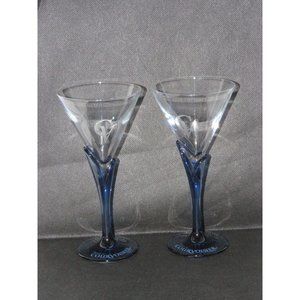 Luigi Bormioli Courvoisier Cognac Cocktail Martini Glasses Blue Stem Set of 2 Pre-owned