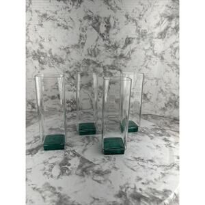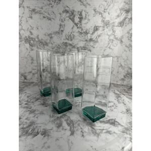 Luigi Bormioli Van Gogh Aqua Green Base Highball Square Glass Set of 4