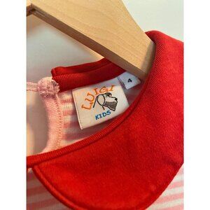 Luigi Kids Valentine's Day Pink Striped Dress Red Heart Applique Girls Size 4