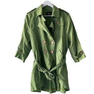 Anthropologie Luii 100% Linen Olive Green Double Breasted Light Jacket with Belt & Button Down Epaulette - Size L
