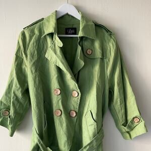 Luii 100% Linen Olive Green Double Breasted Light Jacket with Belt - Size L