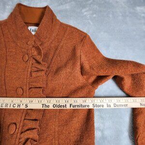 Luii 100% Wool Long Coat Medium Rust Orange Ruffled Bell Sleeves Overcoat Dressy