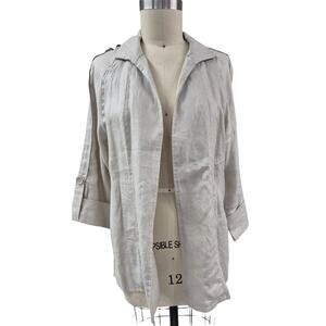 Luii Anthropologie beige linen Open Front Coat Back belt detail NWOT XL